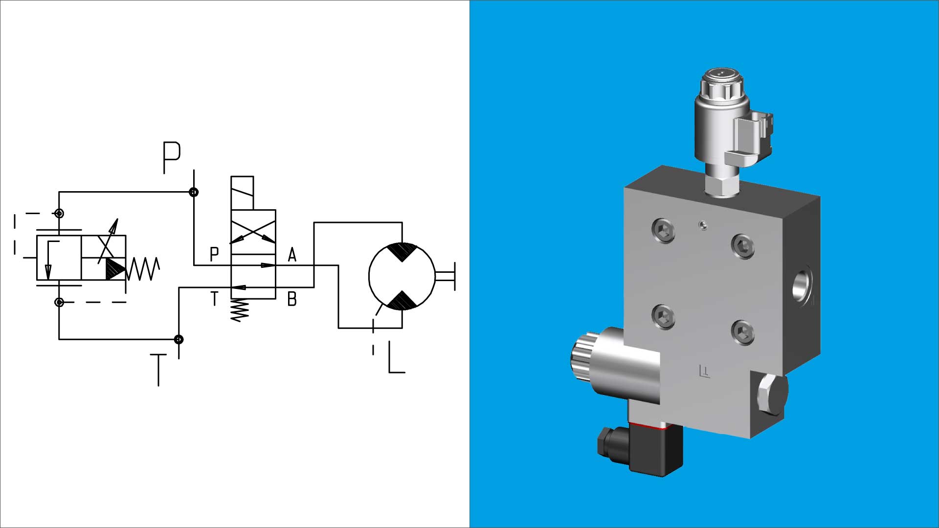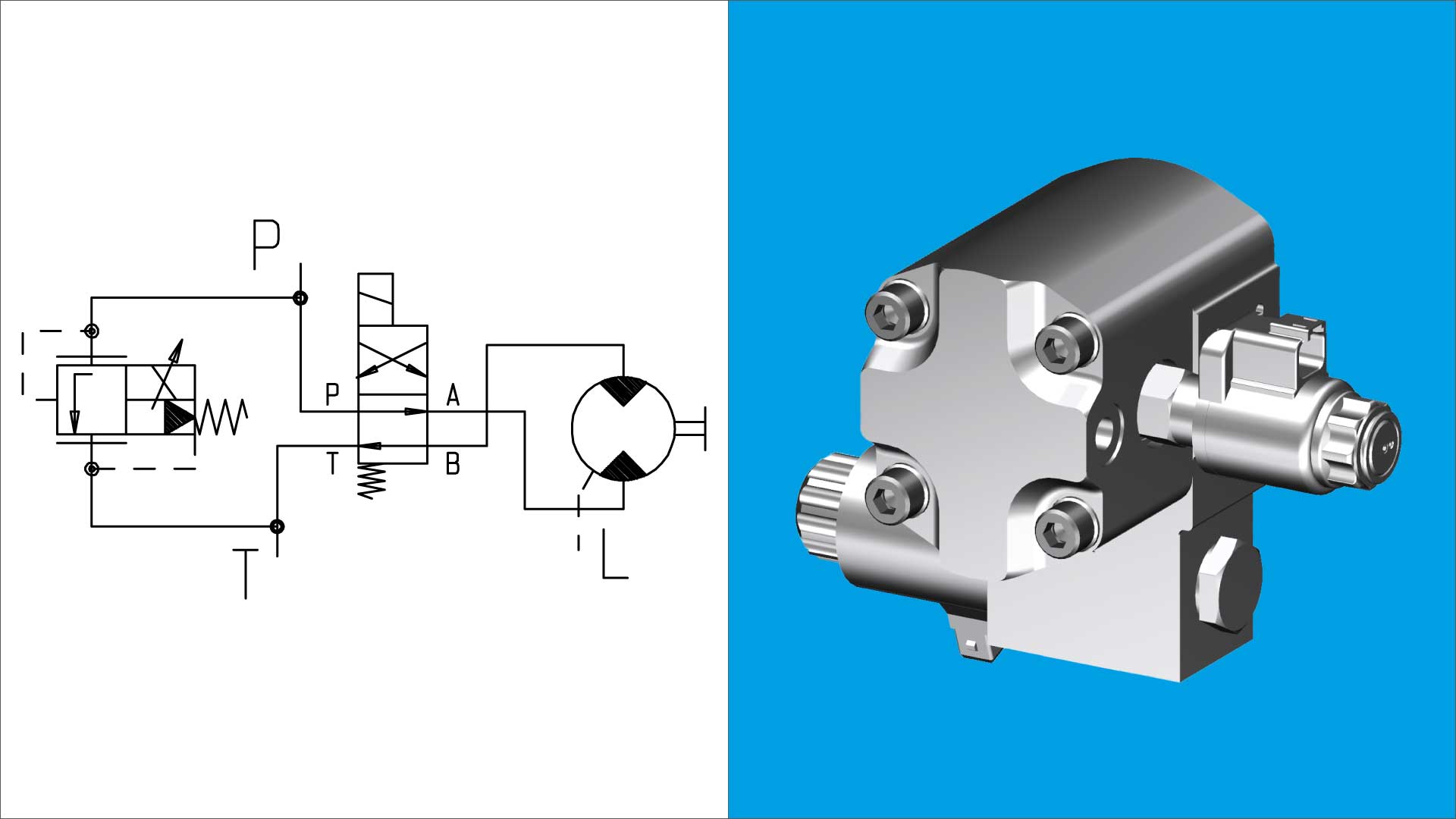 KM 1 „Helytakarékos” szelepegység: proporcionális+ irányváltó szelep