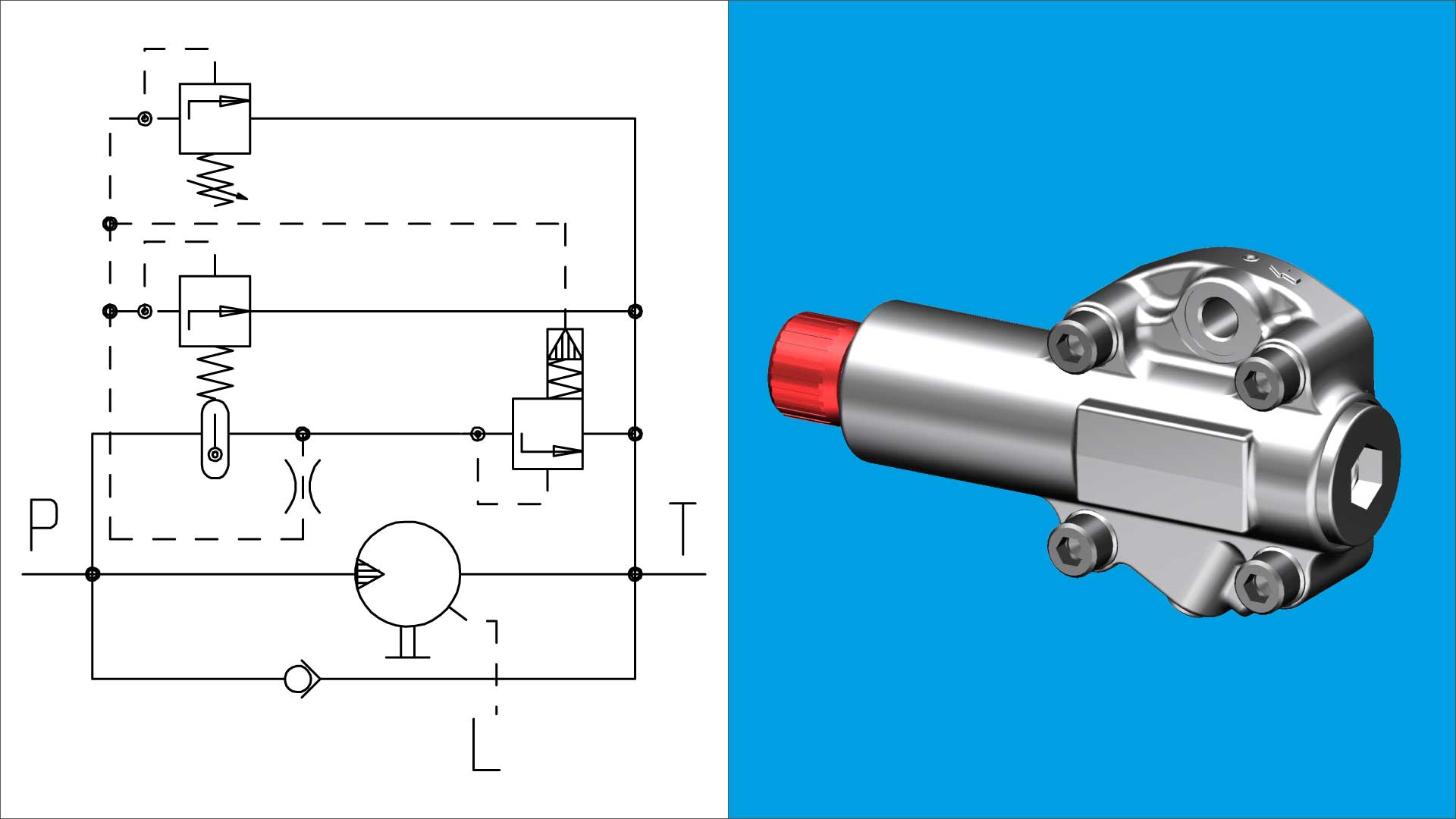 KM 1 Nyomáshatároló szelep, irányváltó egység és szabályzószelep